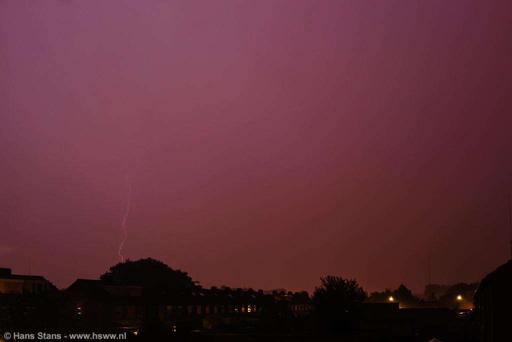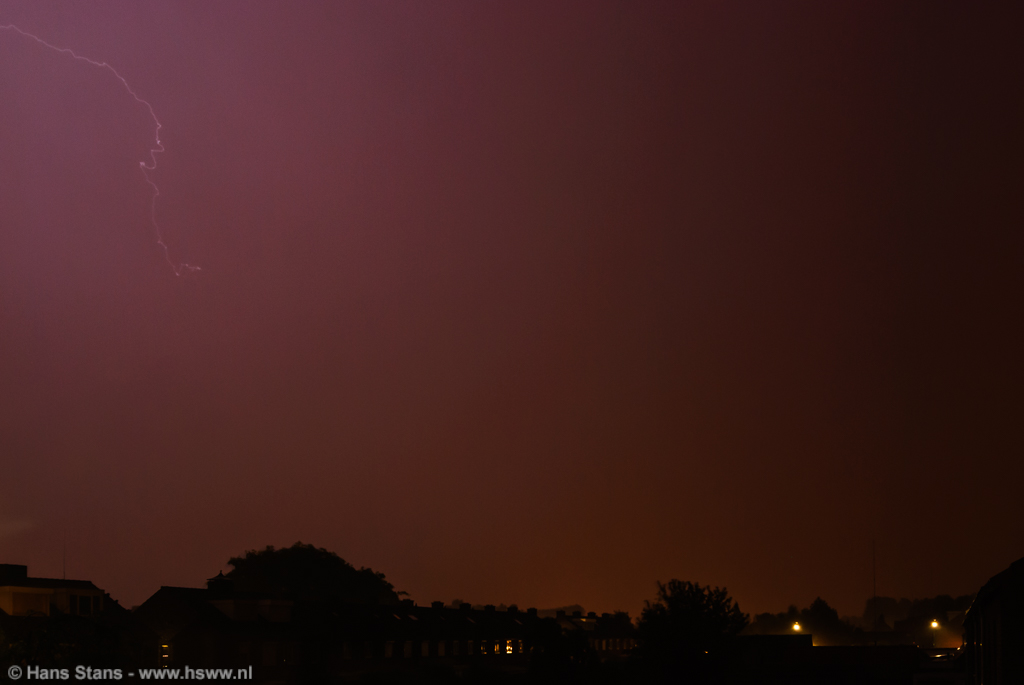 Rond middernacht 29 op 30 juli eindelijk weer eens gebliksem. Helaas alleen indirect geflits en enkele heel zwakke kanalen doorheen zware neerslag... Meer dan deze twee beelden kon ik er niet van maken maar het is/was niet anders.