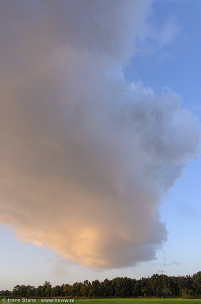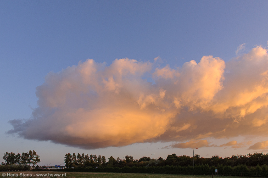 Eenmaal op het zichtpunt was snel duidelijk wat er aan de hand was, uit een ver overhangende wolk viel nog wat lichte regen. In mijn beleving een verder oplossend bui-restant. Ik was eigenlijk iets te ver doorgereden om nog een regenboog te kunnen zien, maar vond de wolk wel mooi en dus werden er foto's gemaakt: