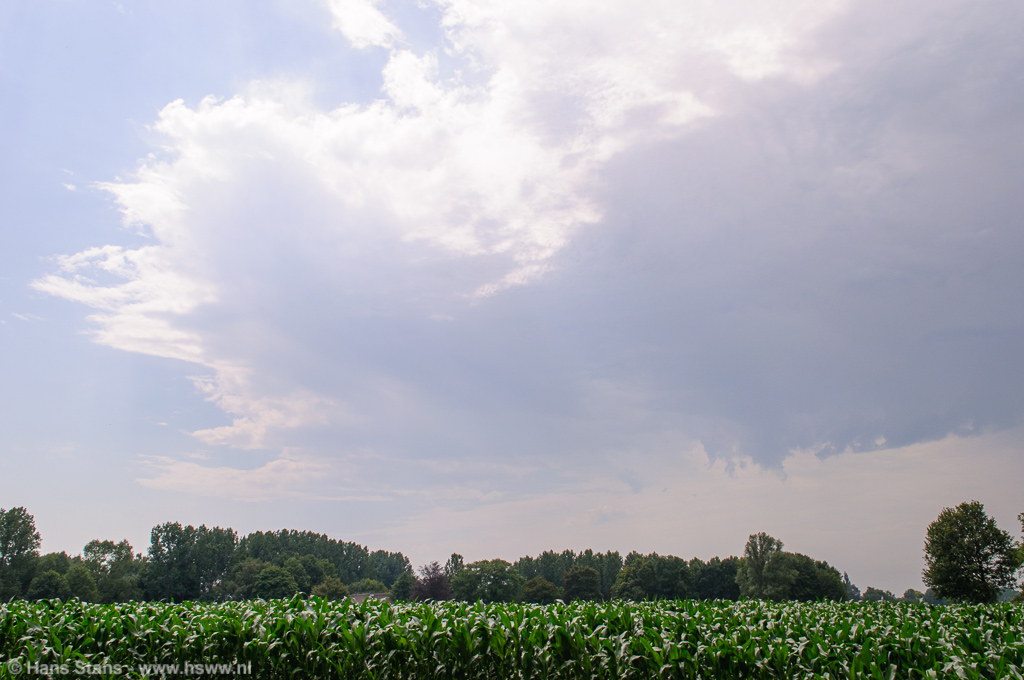 Toen ik zo die restanten stond te fotograferen begon ik wat onzeker, of zelfs wat somber over de dag te worden. Het seizoen had tot nu nog niet een echt hoogtepunt gekend en zou deze dag het dan wel opleveren? 20 Augustus 2009 was ook een potentiële topdag, maar al met al viel dat toch tegen. Zou de warme droge laag niet te dik en te stabiel zijn (CIN, "cap") zodat er amper wat kan gebeuren of misschien pas laat op de avond een enkele bui met hoge basis en alleen hoogte-onweer? En, stel dat de aanvoer van koelere, vochtiger lucht beperkt zou blijven tot het uiterste W of ZW van Nederland, wat dan te doen?