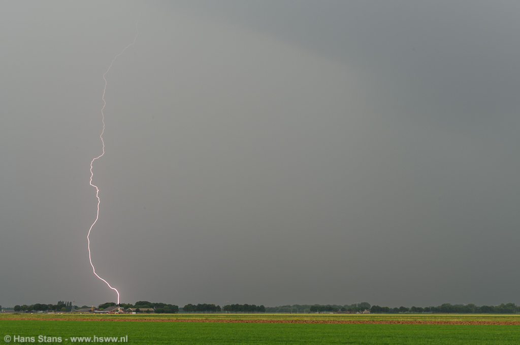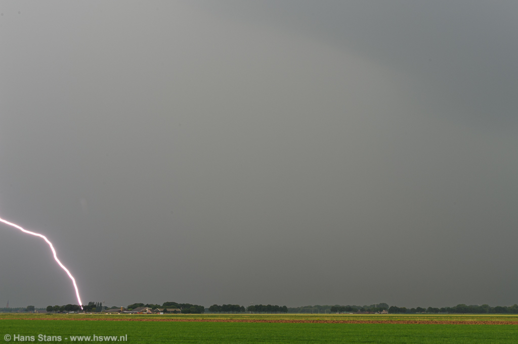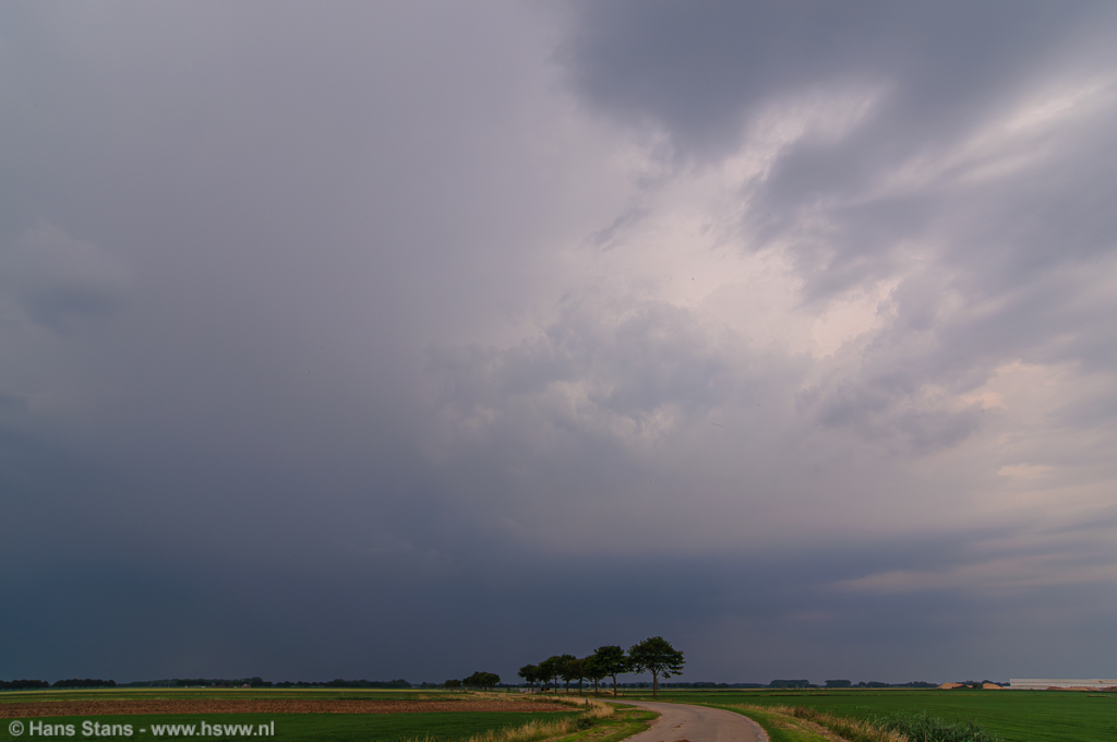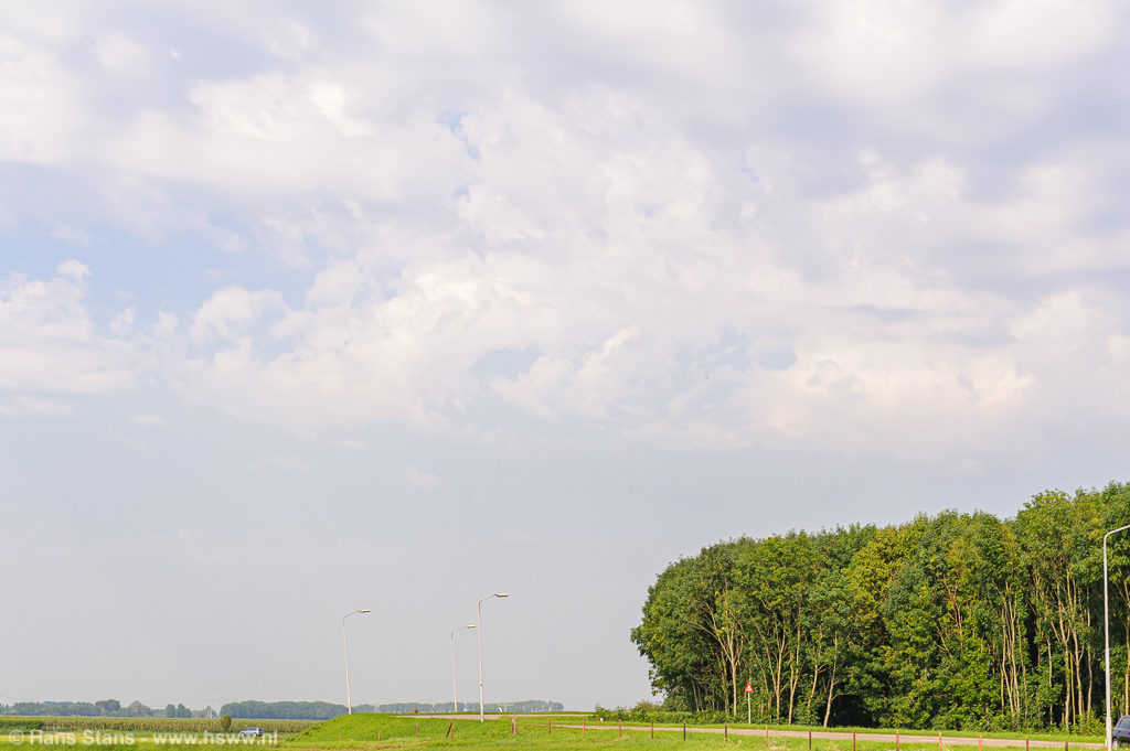 We zijn nu door de neerslag heen. Bijna tot verbazing zien we weer daglicht in het westen. Ferry en Tom zullen de jacht in oostelijke richting gaan voortzetten, zelf besluit ik huiswaarts te rijden. Al snel blijkt dat het buiengeweld niet zonder gevolgen is gebleken, de uitvalsweg Den Bosch-West is vooral in uitgaande richting over een groot stuk ondergelopen, er zijn grote takken afgerukt en er zijn brandweerauto's onderweg. Ten zuiden van Den Bosch zie ik diverse bomen omliggen. De hemel wordt met regelmaat (!) gevuld door prachtige uitgestrekte crawlers, maar ik ben zo onder de indruk van alles dat ik geeneens overweeg een zichtplek te kiezen om te fotograferen... en ja, natuurlijk later weer spijt van.