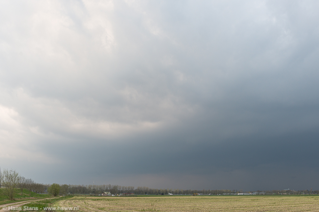 Juist na 17:00 arriveerde de lijn bij Veghel en ik ging er even op uit voor foto's. Het beeld was bijna onwaarschijnlijk donker en blauw en de door bestrijdingsmiddelen verkleurde velden droegen verder bij aan het wat onwerkelijke beeld. Veel activiteit zat er verder niet (meer) op, vnl. veel outflow wind en vijf ontladingen op afstand. Maar: I'll take it, want smaakt naar meer! Op naar de volgende kans.
