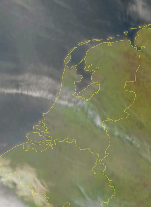 Satellietbeelden van 6 maart om 09:00lt en rond 11:30lt, (bron Sat24 en Weerplaza), de toename van het Saharastof is te zien: