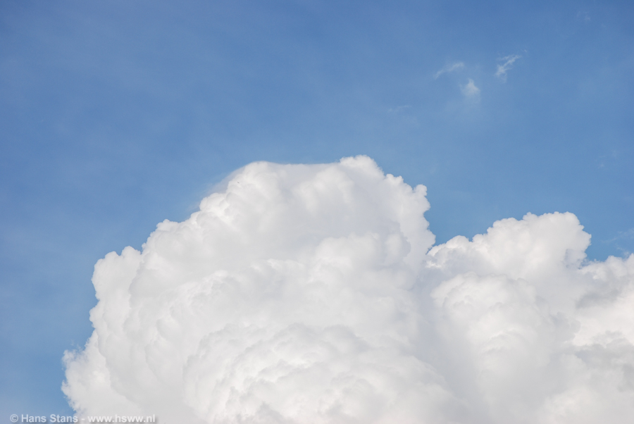Snelgroeiende stapelwolken betekende vandaag dan de eerste kans om "echte" weerfoto's te maken. Wie kent ze niet, die bloemkoolachtige verschijningen die alsmaar groter en hoger worden en vaak uitgroeien tot een regen-, hagel- of onweersbui. En als je er dan met aandacht naar kijkt is het verbazingwekkend hoe ze in hoog tempo 'ontploffen'.