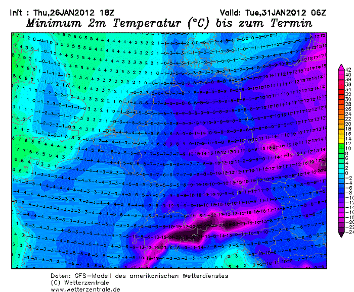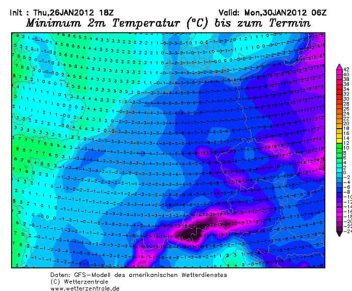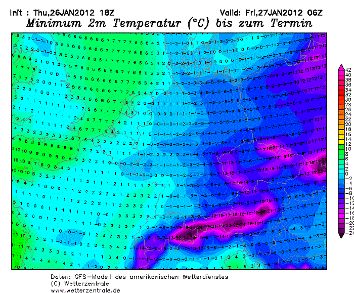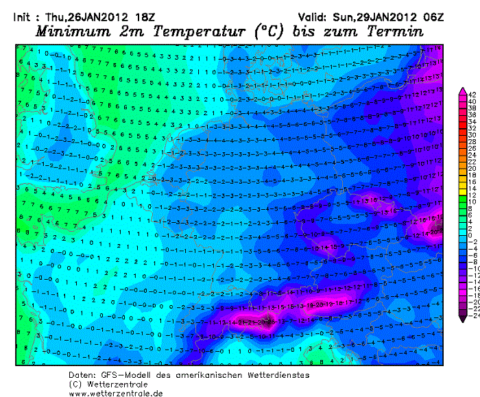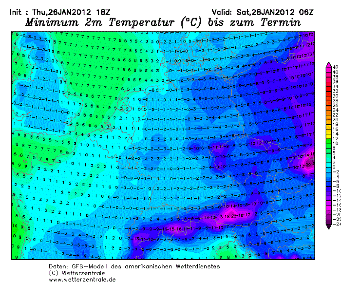 Maar goed, op basis van GFS hierbij de minima in de vroege ochtend voor de komende zes dagen. Mogelijk een of twee graadjes aftrekken dus nog!