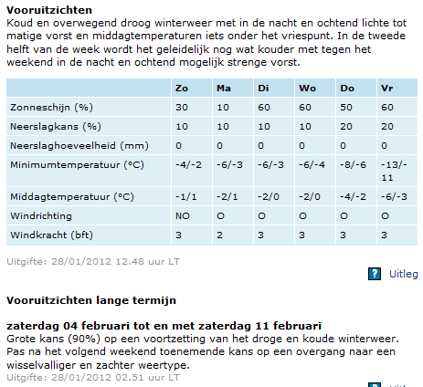 Hieronder de verwachting van ons eigen KNMI. De weercomputers berekenen dat de vorstperiode zeker tot voorbij het volgend weekend zal duren, over het vervolg is dan de nodige onzekerheid. Maar dan zitten we al ver buiten de betrouwbare periode als het gaat om weersverwachtingen.