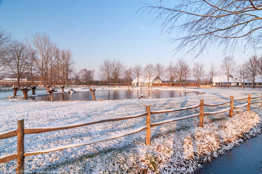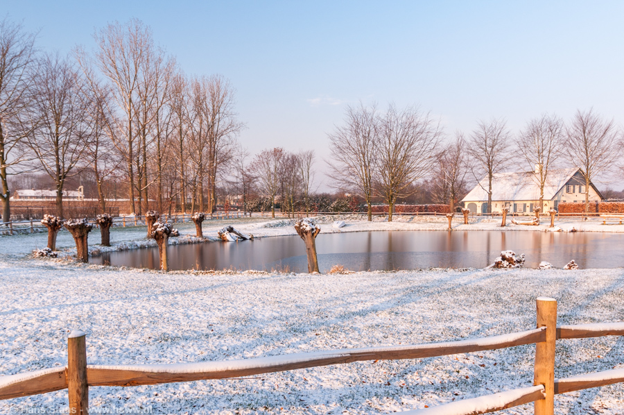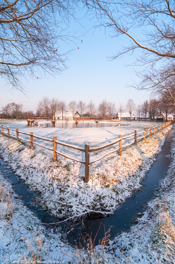 Op dinsdagochtend weer zo'n fotogenieke prachtstemming! Het was weer mooi met een ijslaagje op de sloten en poelen, een (weliswaar erg dun) vers sneeuwdekje en weer dat prachtige licht van de zon net boven de horizon. Had helaas niet veel tijd voor foto's maar heb er al rijdend toch heel erg van genoten. Ik wil meer!
