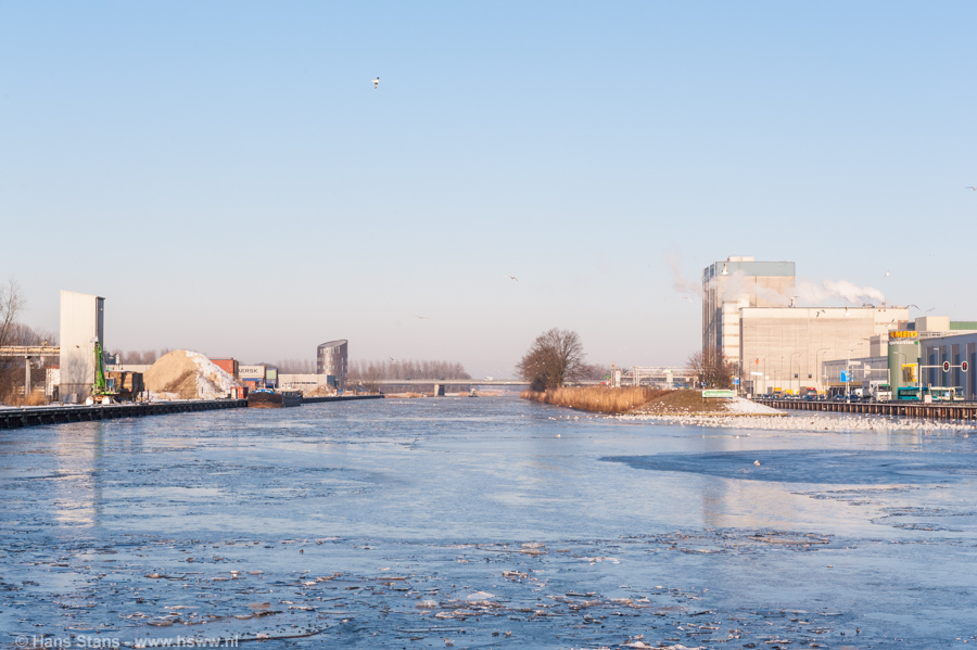 Al best behoorlijke ijsgang, en dit is dan nog een goed stuk. Even verderop bij de sluis boven Veghel hoopt zich dit ijs op door de trekrichting van het water. Op de laatste foto zien we verder weg bij het viaduct van de A50 de ijsbreker aan het werk. De meeuwen nemen meteen bezit van de grootste open stukken.