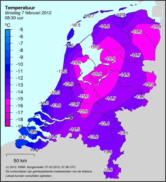 Opnieuw strenge vorst - en in grote delen van NL zelfs weer zeer strenge vorst: